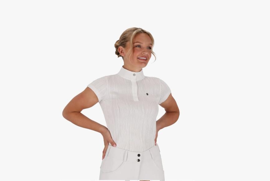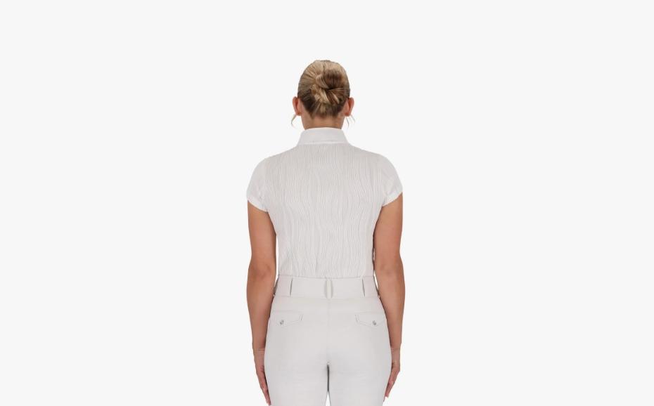 The Kynlee competition shirt is quick-drying and moisture-wicking. Thanks to the stretchy fabric, it feels comfortable to wear and has a beautiful ribbed texture.